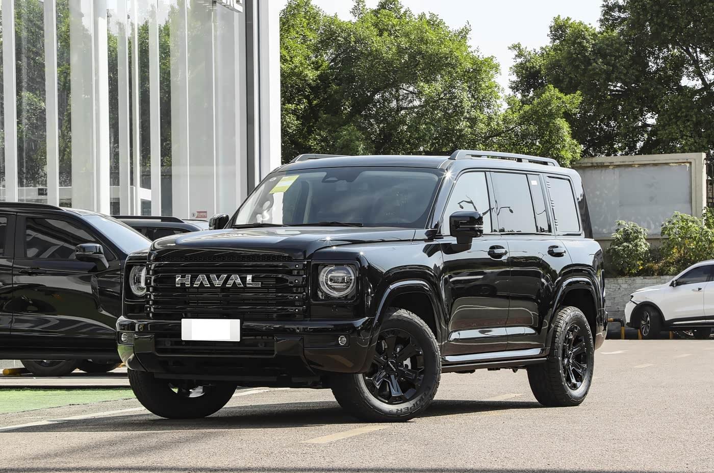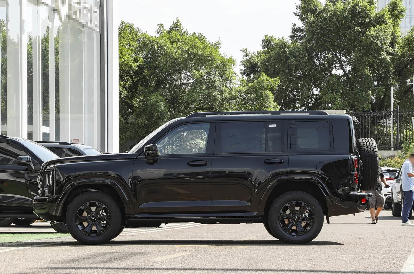 再来看车身侧面部分,5070mm车长与1930mm高度构成标准方盒子造型,但通过同色轮眉与刀锋轮毂设计弱化传统越野车的笨重感。侧窗采用隐私玻璃,B柱至D柱的悬浮式车顶线条增添现代气息,而外凸式轮拱与防擦条则强化了功能性。标配18英寸AT胎(胎纹深度达8mm),胎侧加强层设计可有效抵御碎石冲击,兼顾公路舒适性与非铺装路面通过性。
